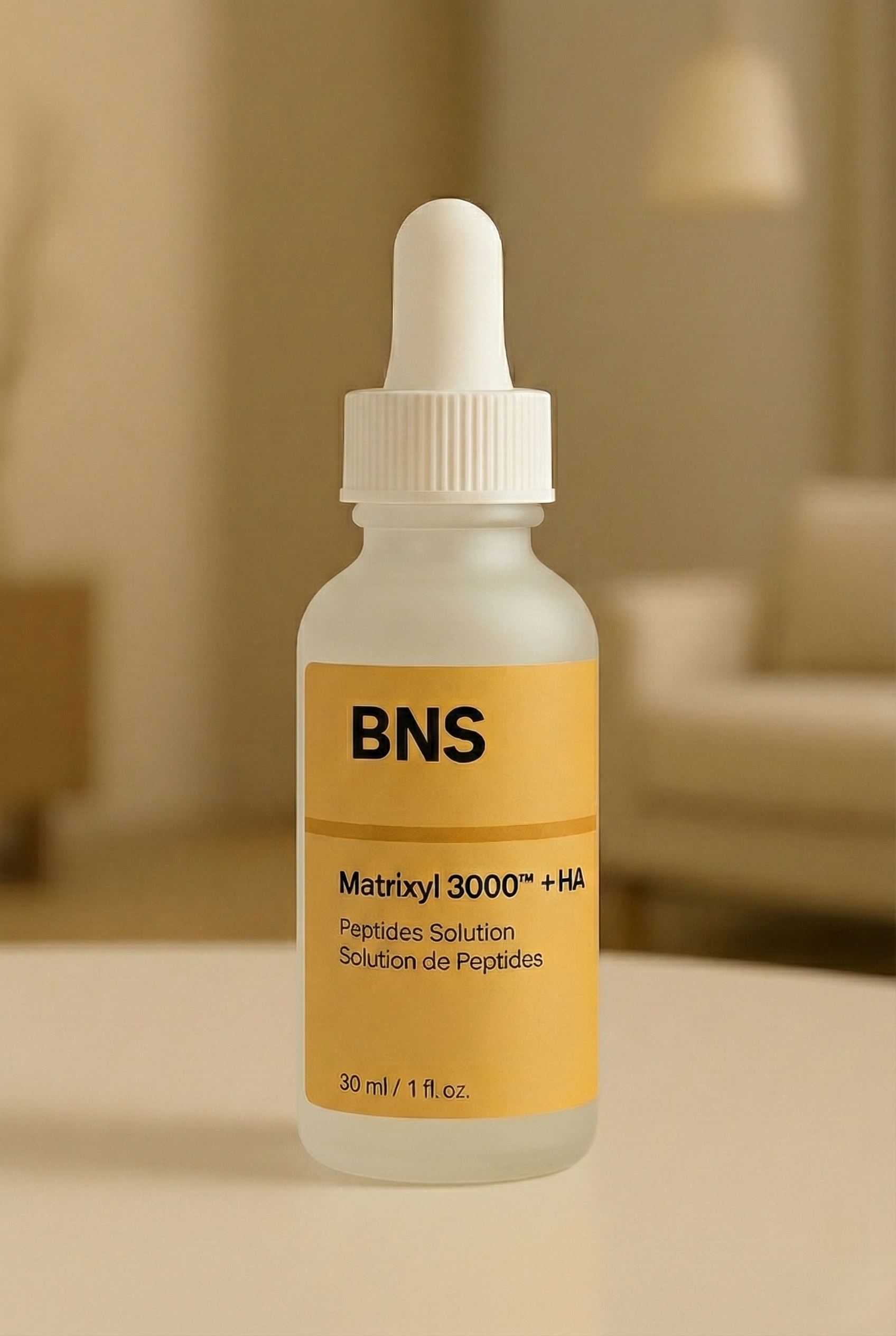 Grâce à une combinaison de Matrixyl 3000™, de peptides de nouvelle génération et d’acide hyaluronique bas poids moléculaire, BNS aide la peau à :